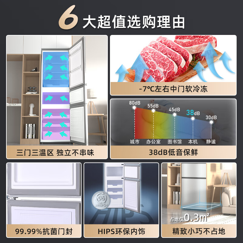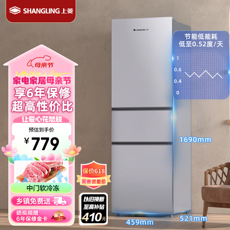 上菱200升三开门冰箱 排行前十名 家用大容量三门电冰箱小型 小户型租房宿舍以旧换新 BMM200L价格:779.00元!