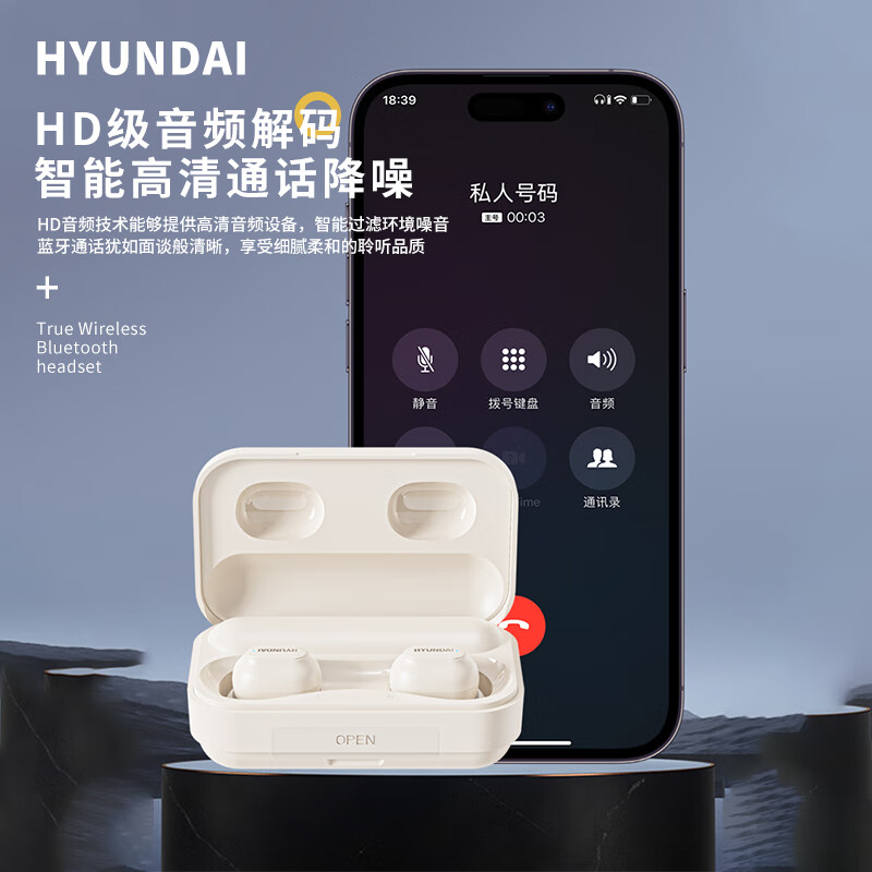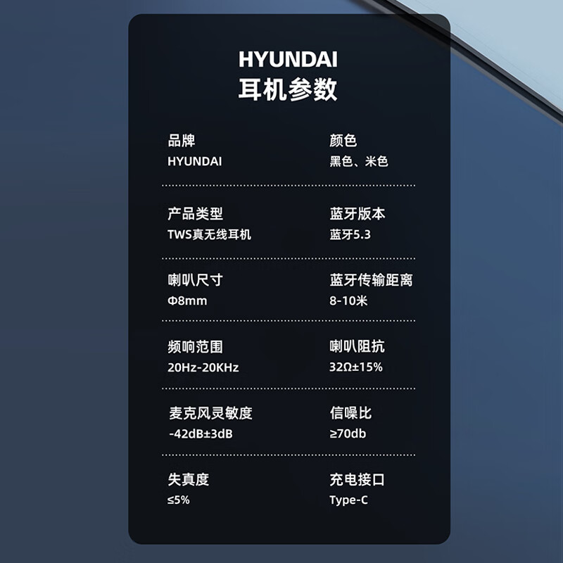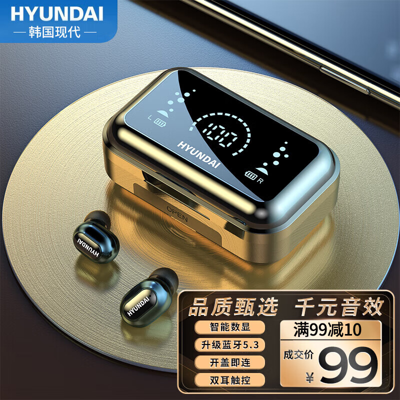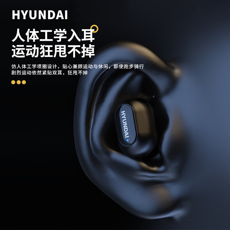 HYUNDAIHY-T04 真无线蓝牙耳机音乐降噪通话 游戏运动超长续航小巧半入耳式蓝牙5.3安卓苹果手机通用黑色价格:99.00元!