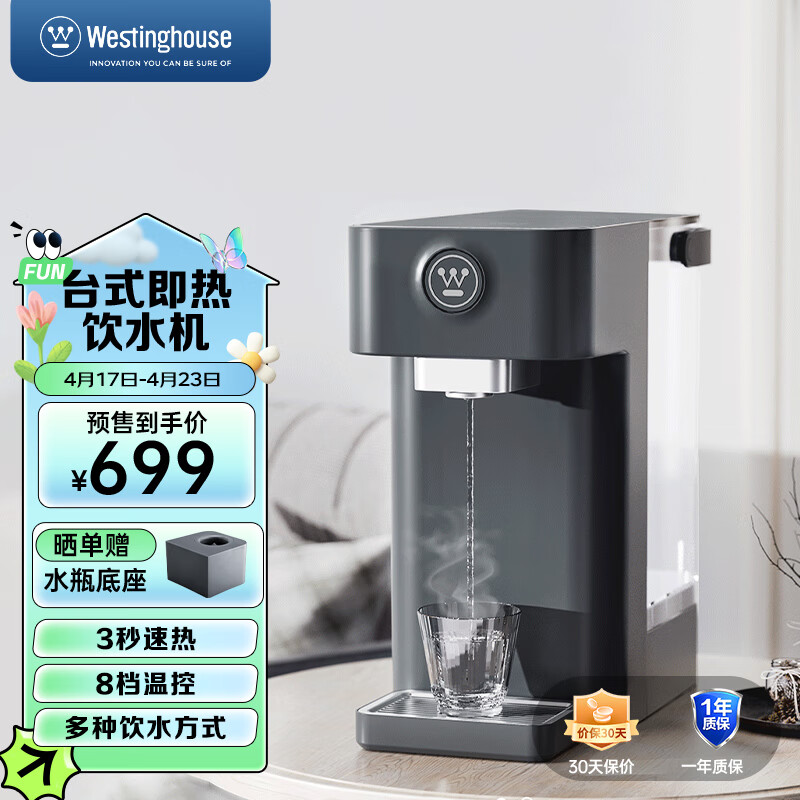 西屋(Westinghouse)即热式饮水机 桌面台式家用小型直饮一体机可用桶装水速热客厅用 WFH30-W3价格:699.00元!