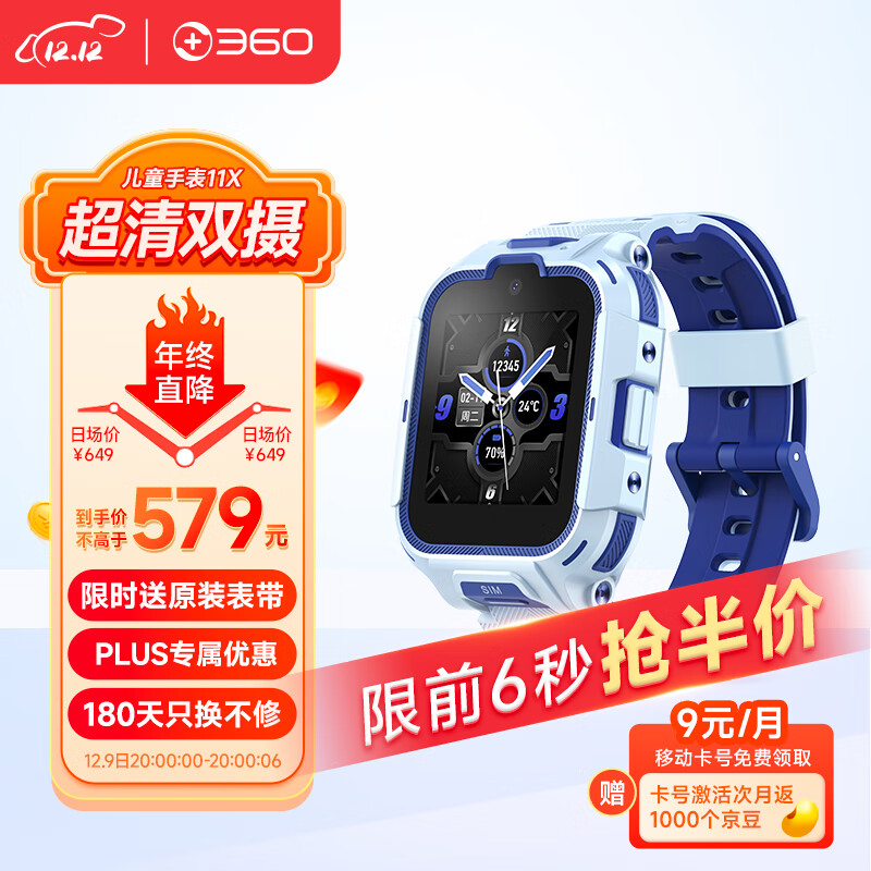 360儿童电话手表11X 高清双摄 儿童定位手表 超长续航 4G通视频通话手表男女孩 跃动蓝价格:599.00元!