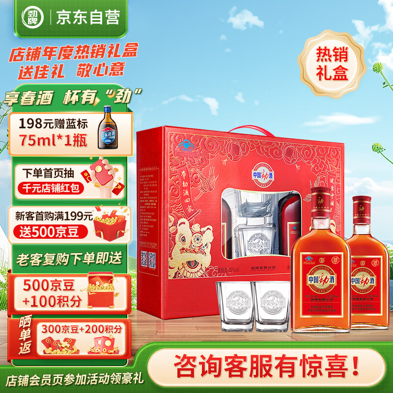 劲牌 中国劲酒 35度 600ml*2瓶 礼盒装 送礼价格:128.00元!