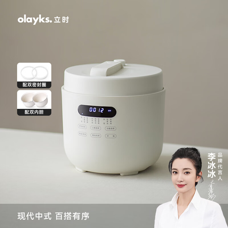 olayks立时 电锅 高压锅 高压电饭锅家用多功能高压快煮智能预约小型锅 5L适用4-6人用双胆价格:369.00元!