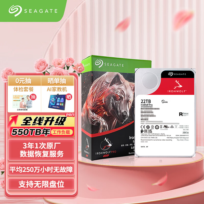 希捷(SEAGATE)NAS硬盘22TB 企业级 512MB 7200转 CMR垂直 SATA 希捷酷狼PRO 机械硬盘 550年负载 数据恢复服务价格:5999.00元!