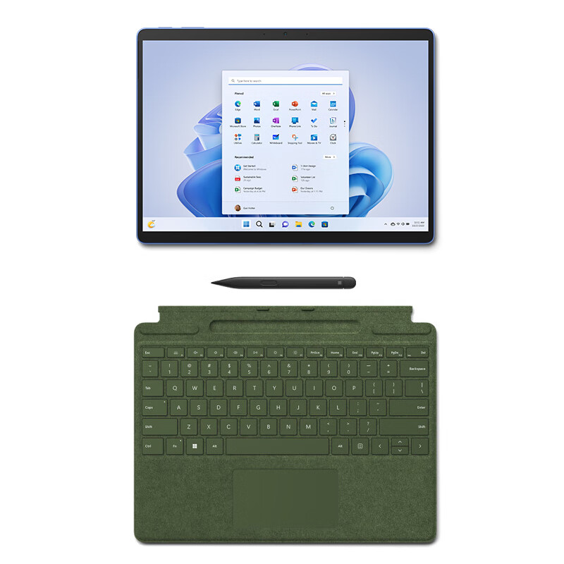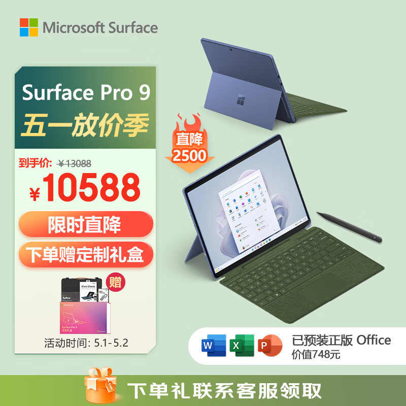 微软Surface Pro 9 宝石蓝+森野绿带触控笔键盘盖i5 16G+256G 二合一平板电脑13英寸120Hz触控屏办公本价格:10588.00元!