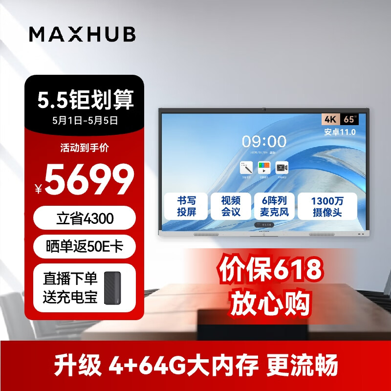 maxhub视频会议平板一体机教学智慧屏摄像头麦克风触摸屏电子白板解决方案V6新锐E65单机价格:5699.00元!