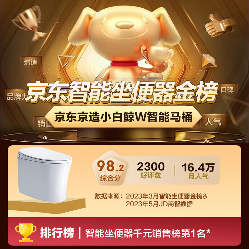 京东京造小白鲸W智能马桶一体机 独立水箱无水压限制坐便器脚感冲水价格:1499.00元!