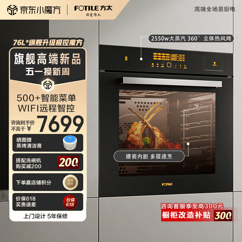 方太(FOTILE)蒸烤箱一体机嵌入式 76L*大容量 搪瓷内胆 蒸烤炖炸一体机 wifi智联 智能菜谱 ZK72-ES20.i价格:7699.00元!