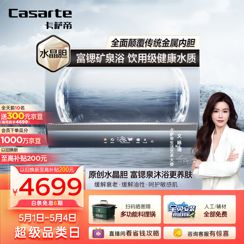 卡萨帝(Casarte)60升银河家用储水式电热水器原创水晶胆卫生间富锶汤泉变频速热一级能效CES60H-PROS3KCEK02U1价格:5762.00元!
