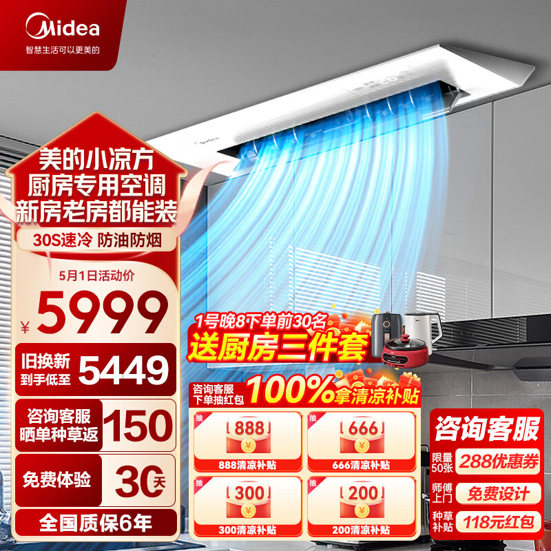 美的(Midea)小凉方 厨房空调 专用嵌入式 一级能效变频1.5匹 家用集成吊顶制冷CKF-35FW/BN1Y-FG100【极地白】价格:5699.00元!