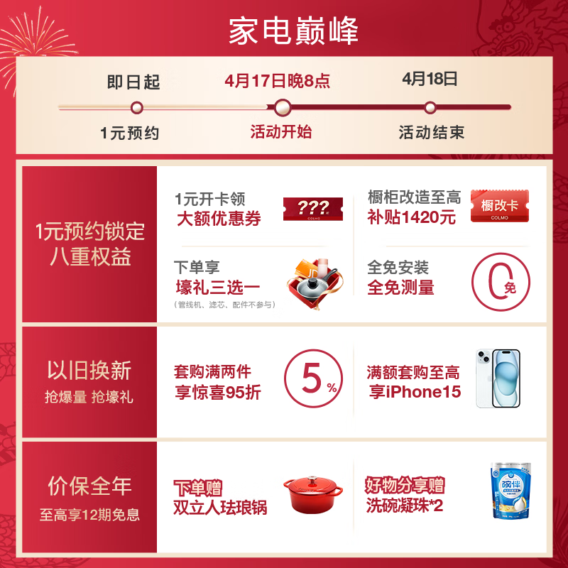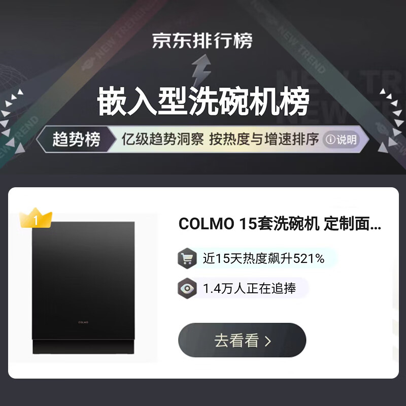 COLMO 新象系列 15套洗碗机 定制面板隐藏安装 自动投放洗碗液 对旋喷淋 168H离子鲜存无异味 G52价格:10999.00元!