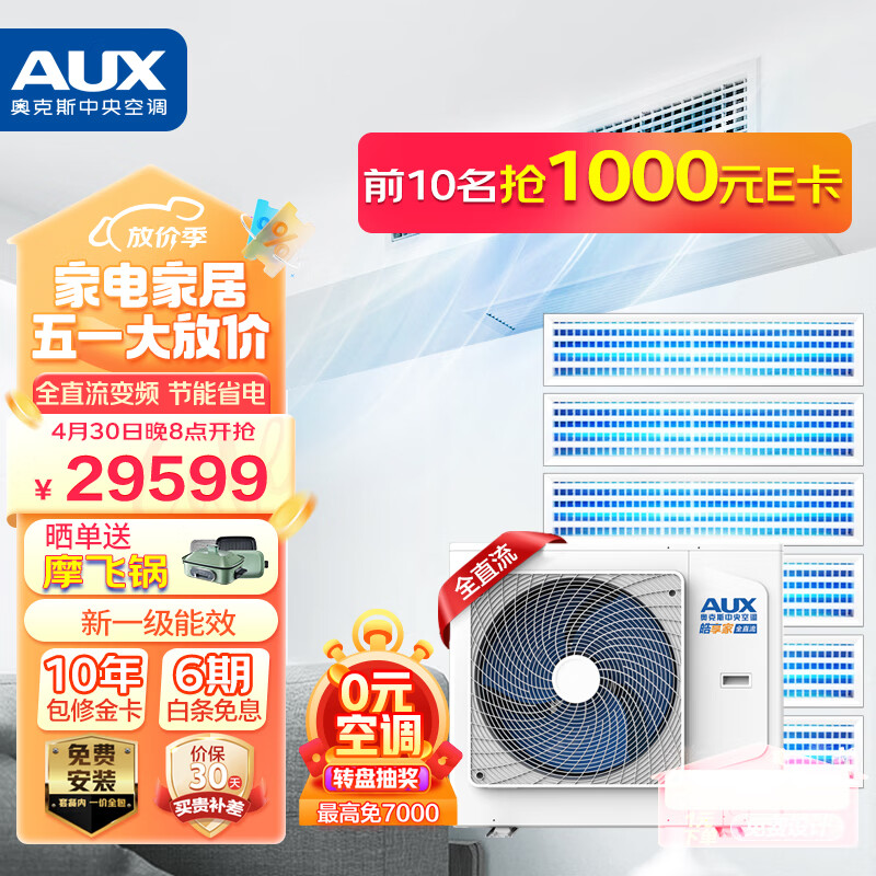奥克斯(AUX)中央空调大6匹一拖六家用小多联机风管机1级能效全直流变频嵌入式空调适用五室一厅DLR-H160W(G1)价格:29599.00元!