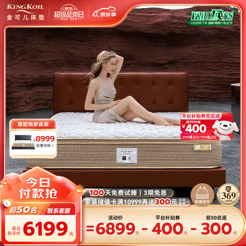 金可儿(Kingkoil)乳胶床垫世茂酒店款席梦思弹簧软硬适中世茂康莱德+1.8米*2米价格:6899.00元!