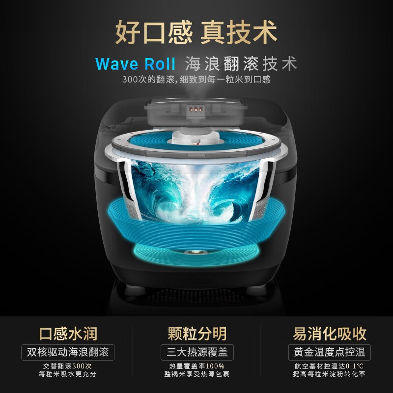 4、外形外观:高大上内胆容量:大操作难易:操作简单其他特色:彩屏很漂亮功能配置:齐全蒸饭口感:软糯香