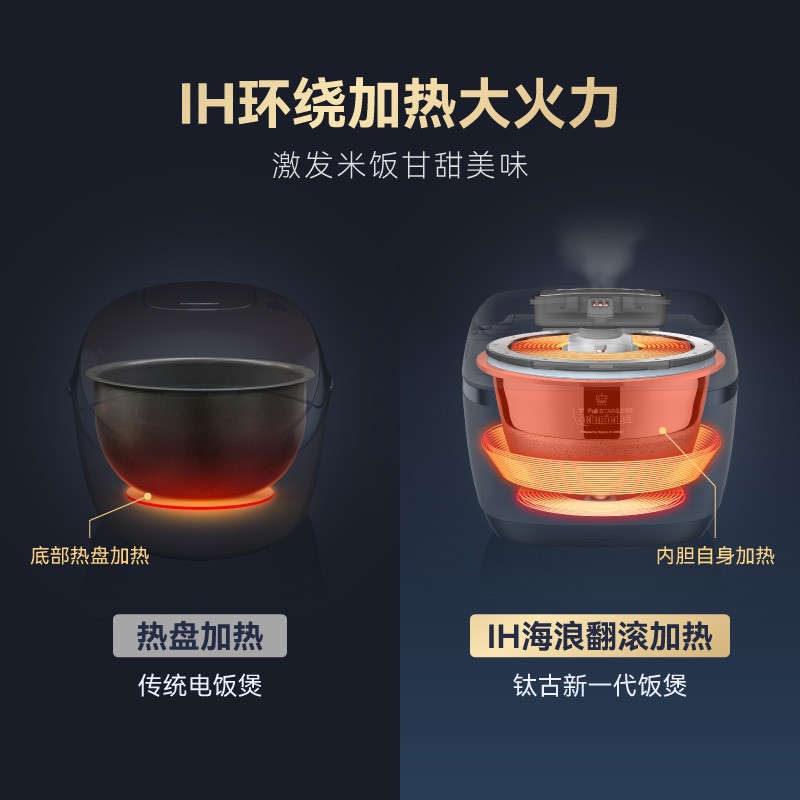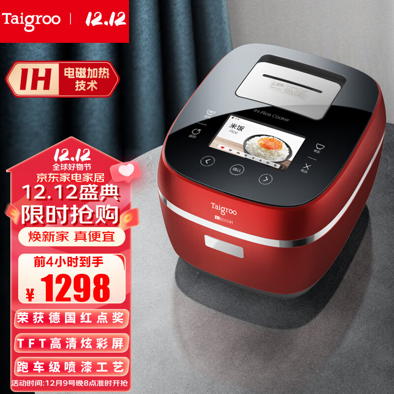 Taigroo钛古电饭煲 微压多段IH加热厚钢V胆彩屏显示 3.3L家用电饭锅IC-B3501 魅影红(TFT)价格:1499.00元!