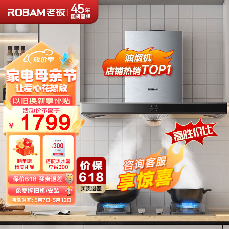 老板(Robam)油烟机抽油烟机20风量大吸力顶吸式抽油烟机家用 65X8H价格:1717.00元!