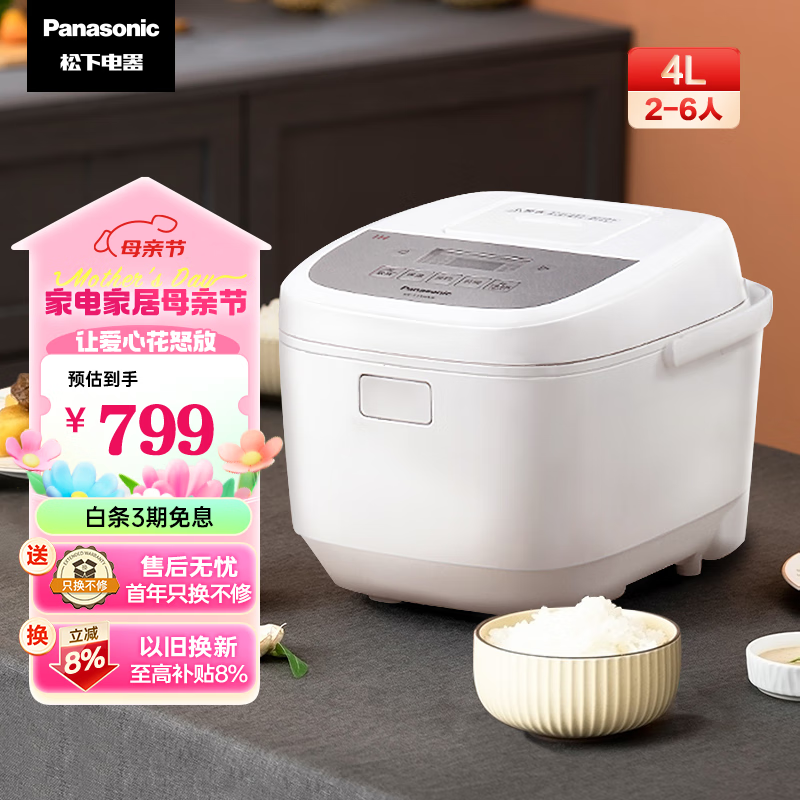 松下(Panasonic)4L电饭煲 IH家用电饭煲 智能双预约 多样化菜单 家用电饭锅 SR-T15HN8价格:499.00元!