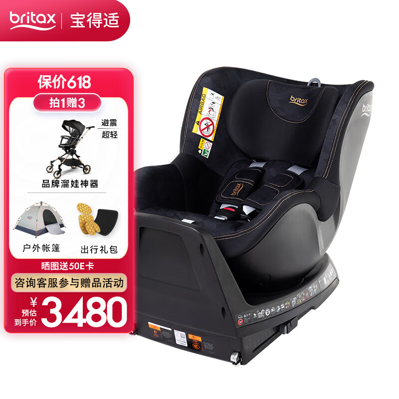 宝得适(BRITAX)宝宝儿童座椅0-4岁isize认证正反安装双面骑士plus夜影黑价格:3980.00元!