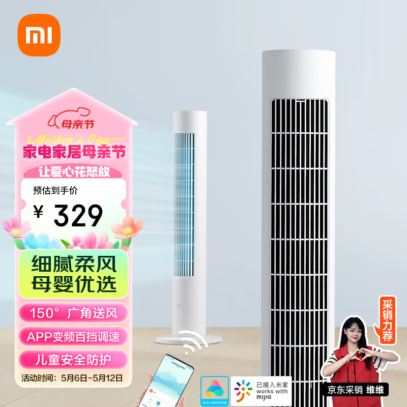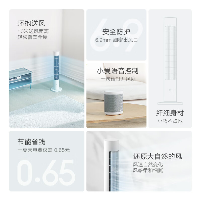 米家小米电风扇落地扇塔扇2无叶风扇 直流变频 广角自然风轻音节能大风量智能控制 APP100档调节价格:329.00元!