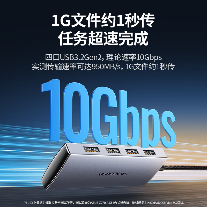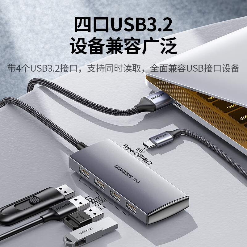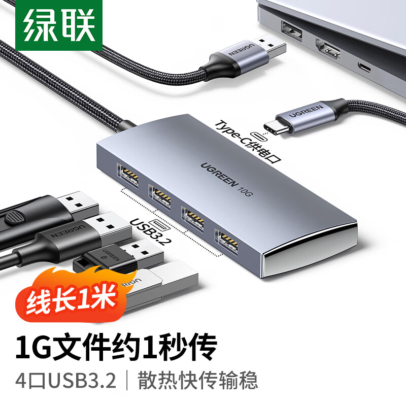 绿联 USB3.2分线器10Gbps扩展坞 3.2Gen2高速4口拓展坞集线器HUB 笔记本台式电脑一拖四延长线转换器价格:169.00元!