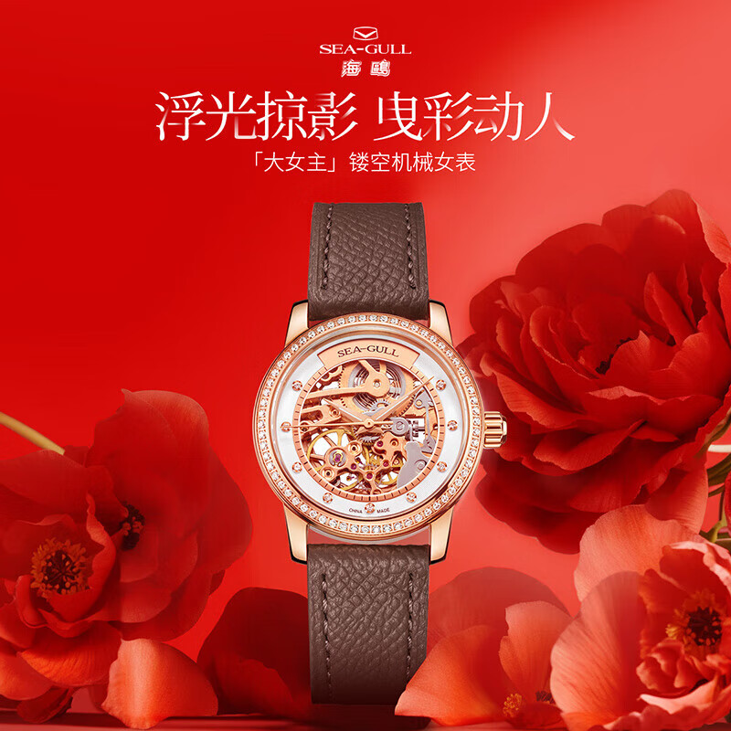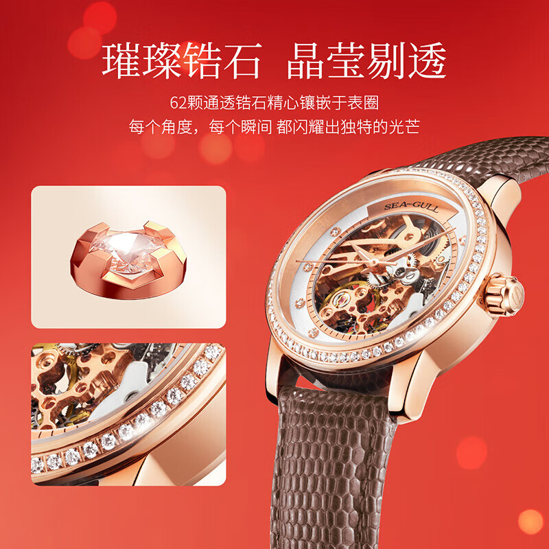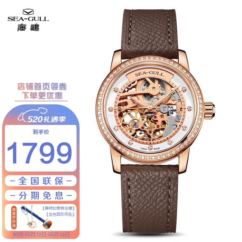 海鸥(SEAGULL)手表女士自动机械表 女表送女友礼物 镂空腕表 719.403LK(棕)价格:1979.00元!