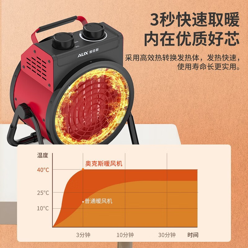 奥克斯(AUX) 暖风机工业取暖器家用节能小钢炮大功率热风机速热省电暖器暖风器 220V 3000瓦(工业家用陶瓷款)强化升级款价格:189.00元!