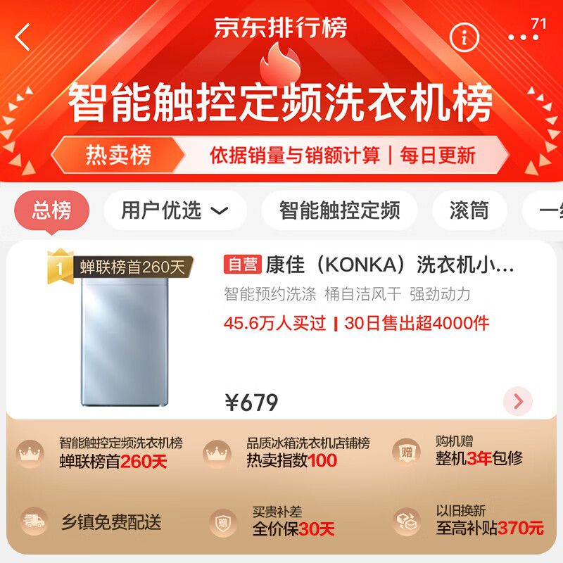 说实话这款康佳XQB80-712的朋友有点多,这回就给大家介绍下,这款才出不久,特别的受欢迎,包装精美,细节做得很好,感觉自己收到了一份特别的礼物。