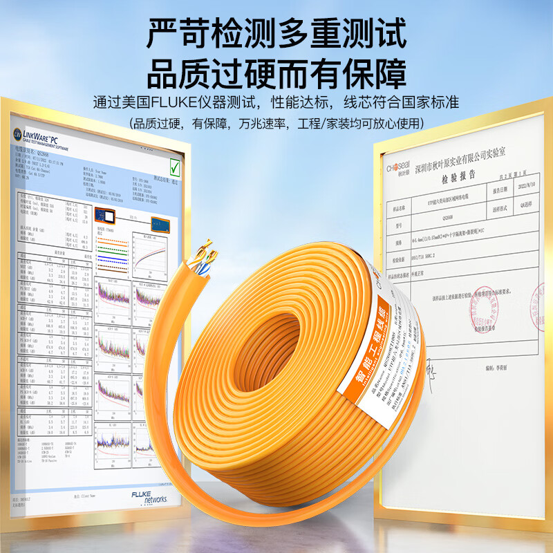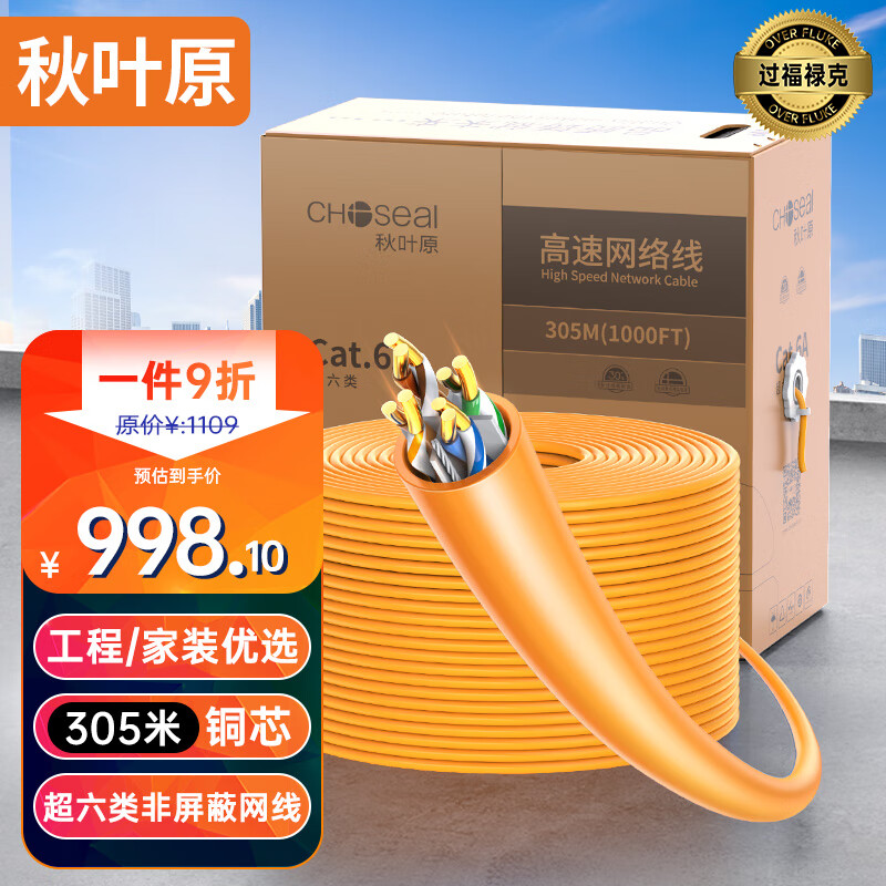 秋叶原(CHOSEAL)原装超六类非屏蔽网线 CAT6A类万兆高速 纯铜线芯 工程家装箱线 橙色 305米 QS2668CT305价格:1109.00元!