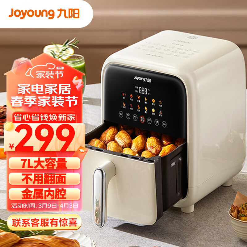 九阳(Joyoung)聚能寰顶 高端触控 蒸汽嫩炸空气炸锅 家用7L大容量 薯条机电炸锅 KL70-V593价格:299.00元!