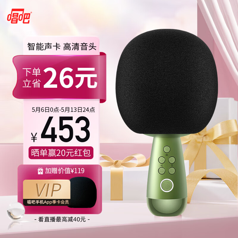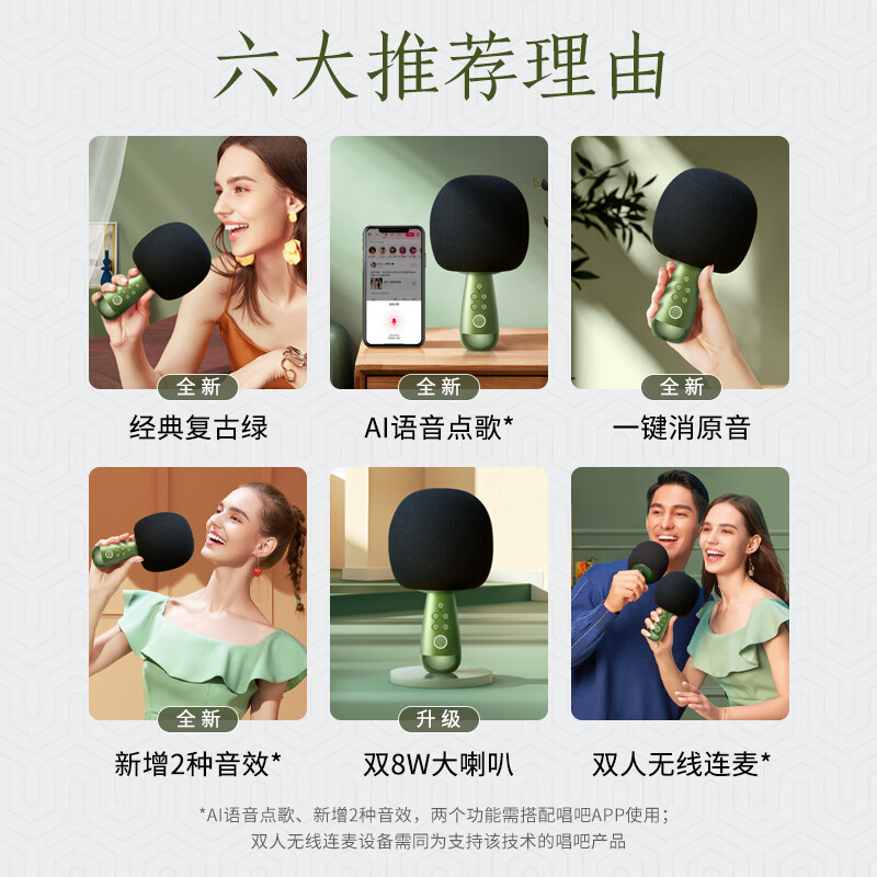 唱吧小巨蛋麦克风G2升级版 手机K歌麦克风音响一体 家庭娱乐KTV无线话筒 高音防啸叫 复古绿价格:453.00元!