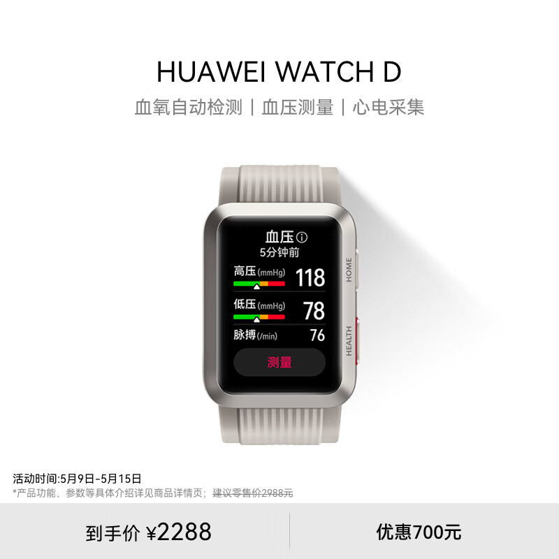华为【便携血压测量手表】WATCH D华为手表智能手表华为血压表 支持测量血压 钛银灰价格:2288.00元!