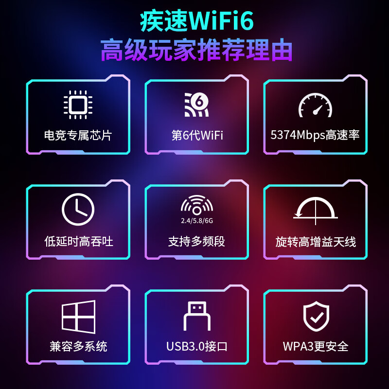 COMFAST CF-972AX千兆免驱动USB无线网卡AX5400M台式电脑笔记本电竞网络外置无线WiFi6接收器价格:138.00元!
