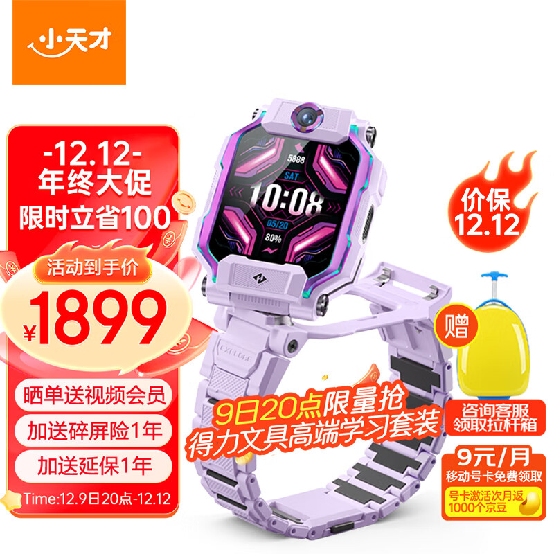 小天才儿童电话手表Z9体温监测智能手表 学生儿童移动联通电信4G视频拍照双摄定位手表手机男女孩豆蔻紫价格:1999.00元!