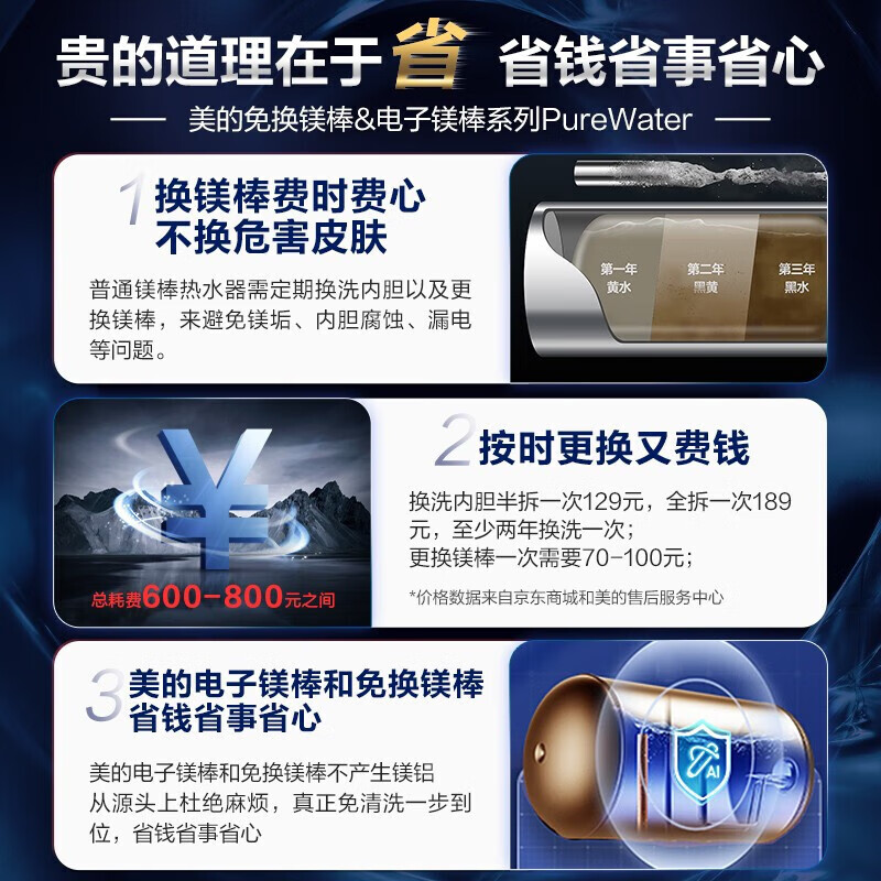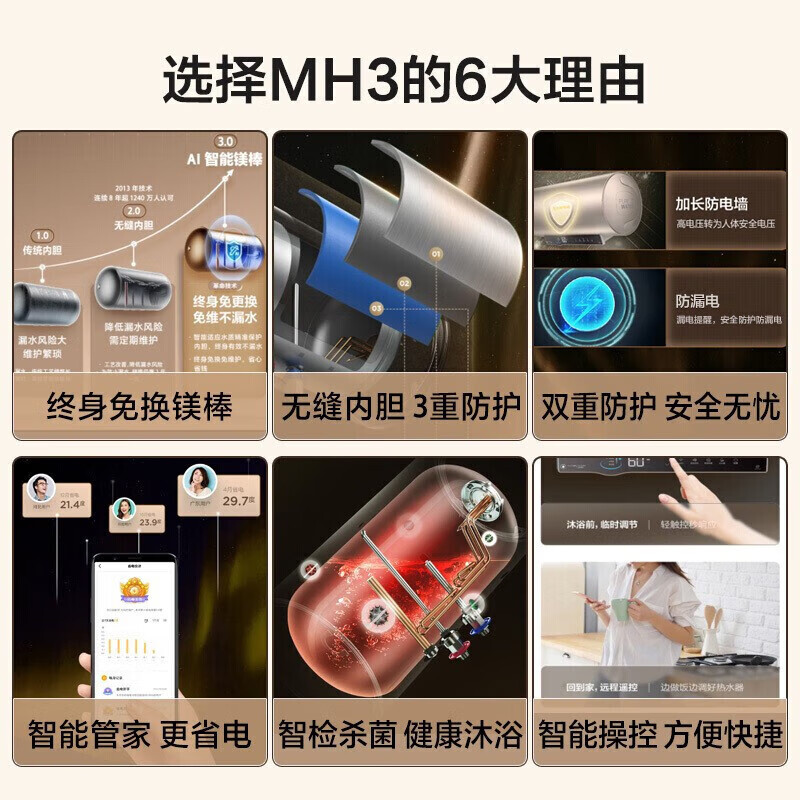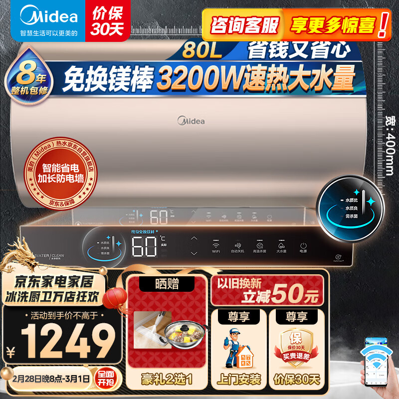 美的(Midea)80升电热水器 长效镁棒终身免更换 水质可视化一级节能 智能家电APP控制F8032-MH3(HE)价格:1249.00元!