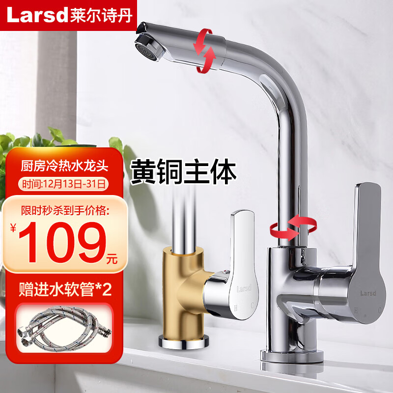 莱尔诗丹(Larsd)面盆水龙头铜主体卫生间洗脸盆水龙头720°旋转台盆冷热水龙头F051价格:99.00元!