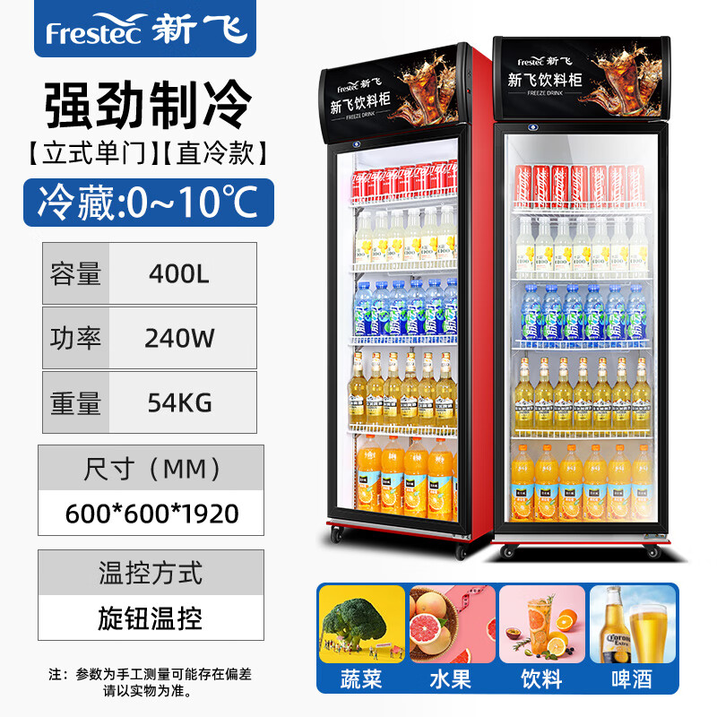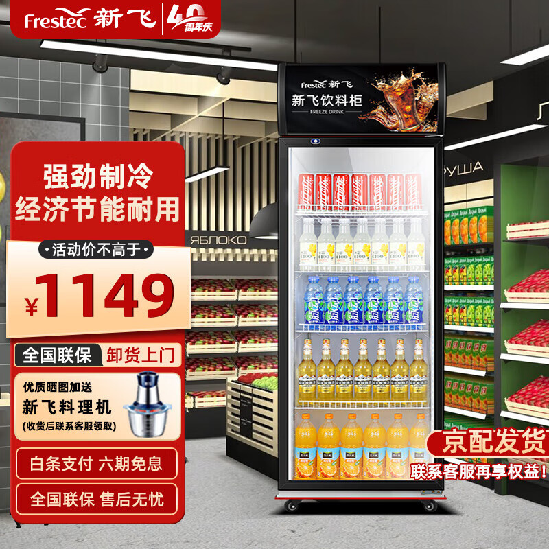 新飞(Frestec)400升单门冷藏冰箱展示柜商用 超市饮料啤酒保鲜冷柜冷饮茶叶陈列柜LC-238JH价格:1149.00元!