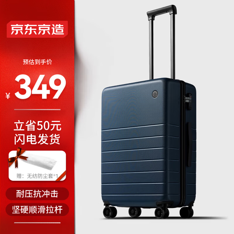 京东京造 无界行李箱24英寸拉杆箱旅行箱男女PC托运大容量 深海蓝价格:399.00元!