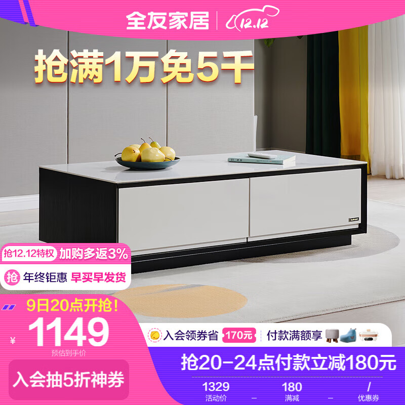全友家居 茶几大小户型岩板台面茶台现代客厅家具DW1055价格:1329.00元!