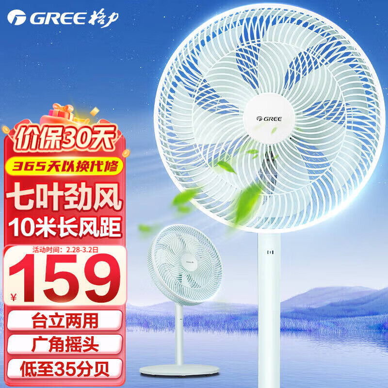格力(GREE)电风扇家用节能落地扇学生立式大风量客厅宿舍机械轻音电扇 七叶竹浅绿+青色机械款FD-35X65h7价格:147.00元!