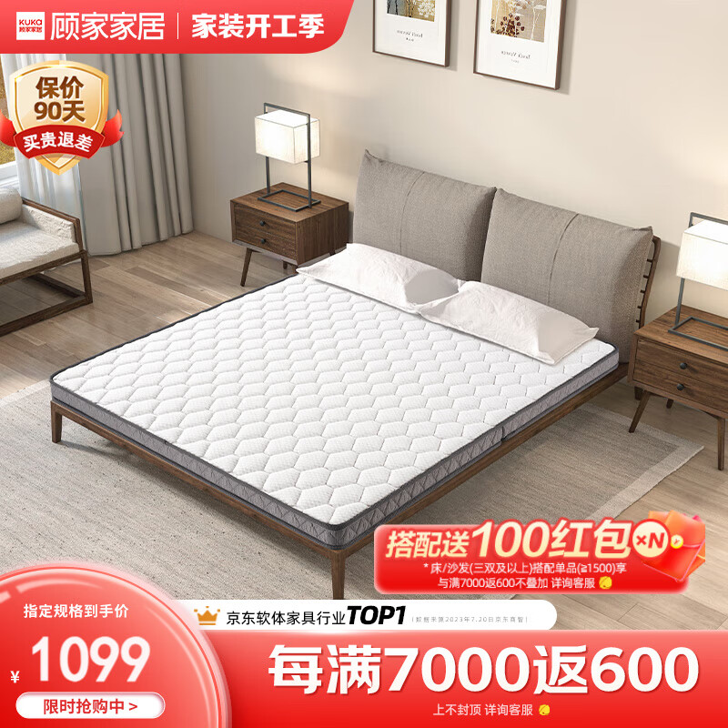 顾家家居(KUKA)可折叠榻榻米椰棕乳胶软硬两用9cm薄垫M0063C 1.5*2.0m价格:1099.00元!