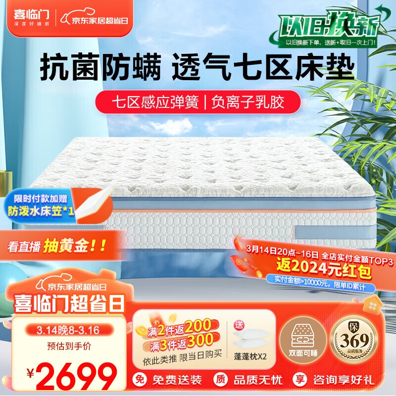 喜临门【杨洋推荐】负离子乳胶 七区独袋弹簧黄麻床垫 漾1.5*2.0m价格:2699.00元!