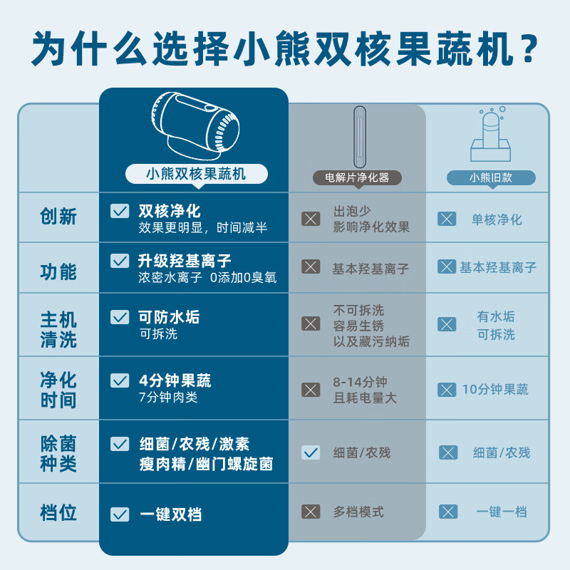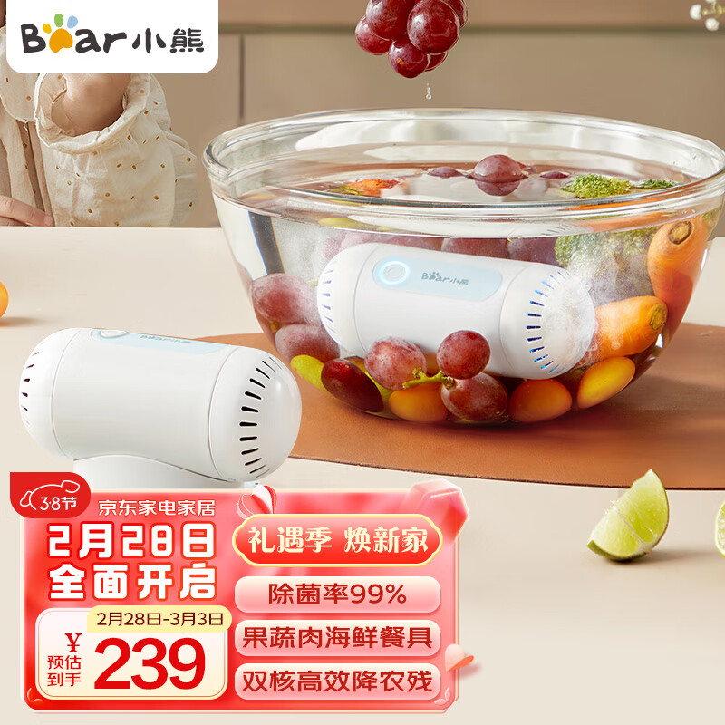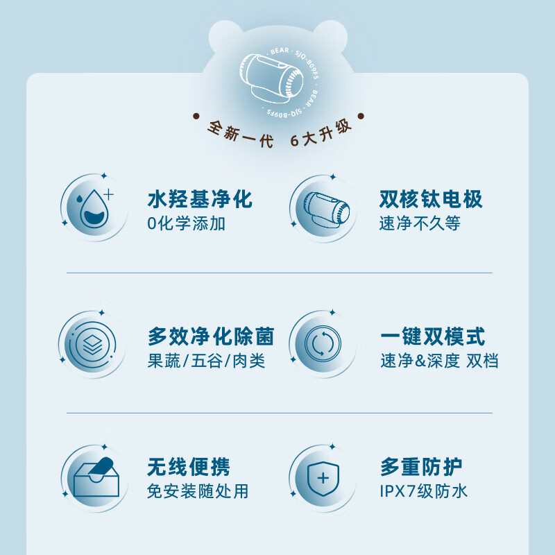 小熊(Bear)果蔬清洗机 家用洗菜机双核净化器水果消毒神器 食材净化器去农残无线便携SJQ-B09F5价格:239.00元!