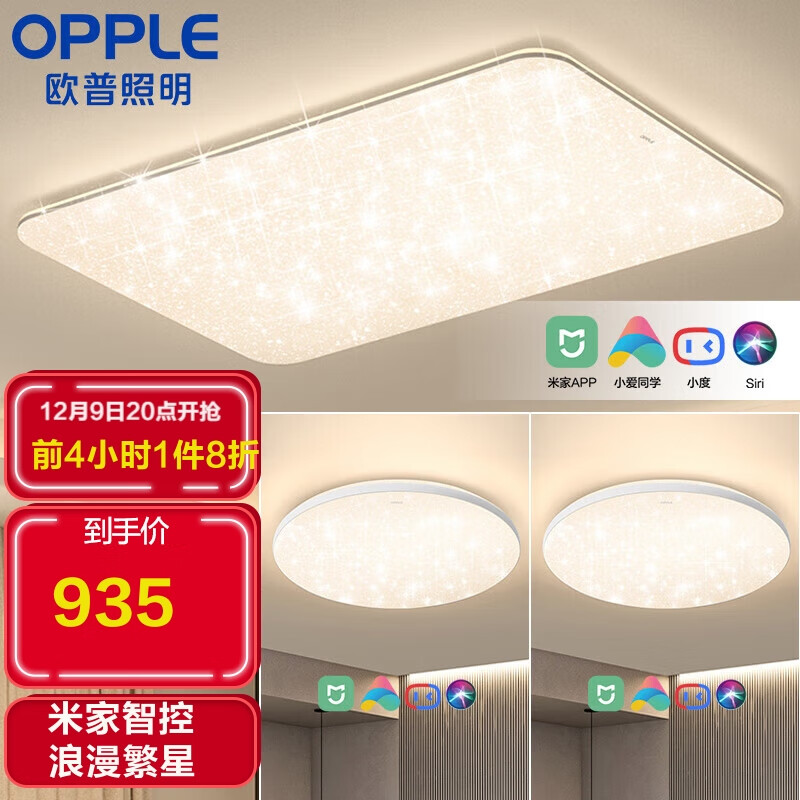 欧普(OPPLE)LED智能吸顶灯客厅灯现代简约浪漫繁星智能音箱/AI满天星白2价格:1299.00元!