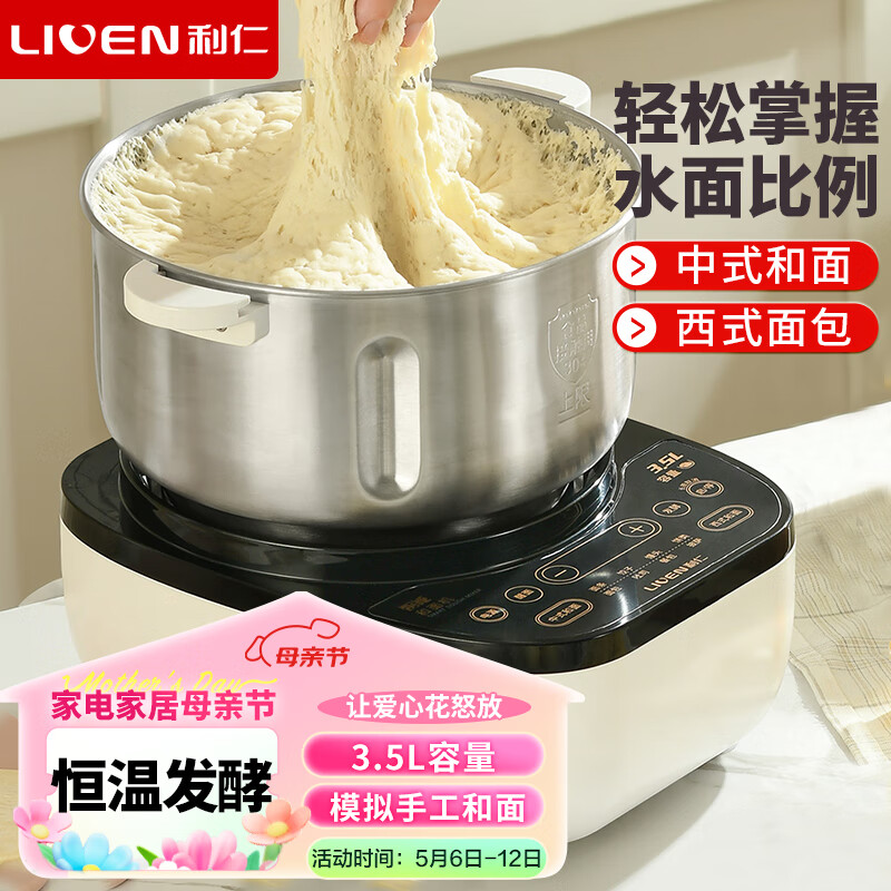 利仁(Liven)和面机家用揉面机厨师机全自动搅面机发面机醒面机多功能搅拌机家用料理机智能款3.5升 HMJ-D3526价格:299.00元!