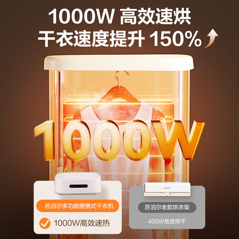 苏泊尔(SUPOR)干衣机烘干机家用布罩类折叠便携小型烘衣机可定时巴氏+高温除菌内衣内裤消毒机干衣神器ELD-530A 价格:450.00元!