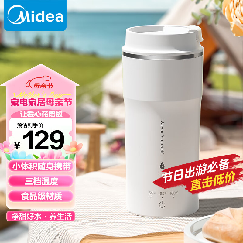 美的(Midea)电热水杯咖啡杯便携式旅行杯小型家用净甜户外保温杯电水壶烧水杯小容量MK-DB03X1-201价格:129.00元!