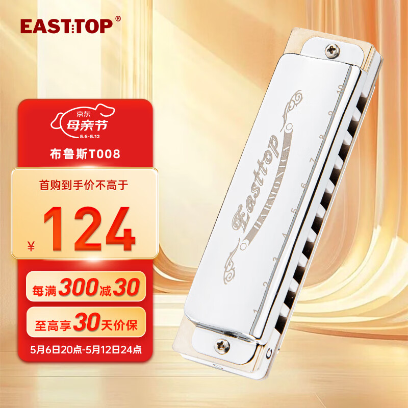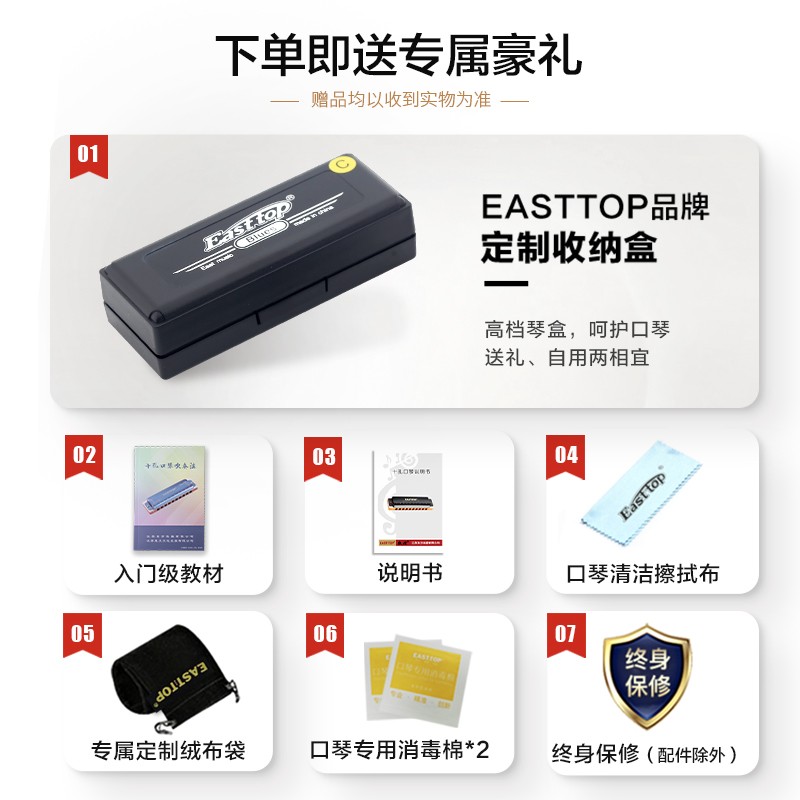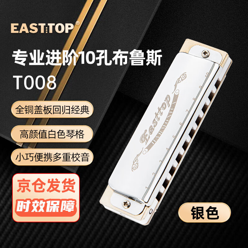 东方鼎(EAST TOP)布鲁斯口琴10孔银色盖板黑色塑盒T008价格:148.00元!