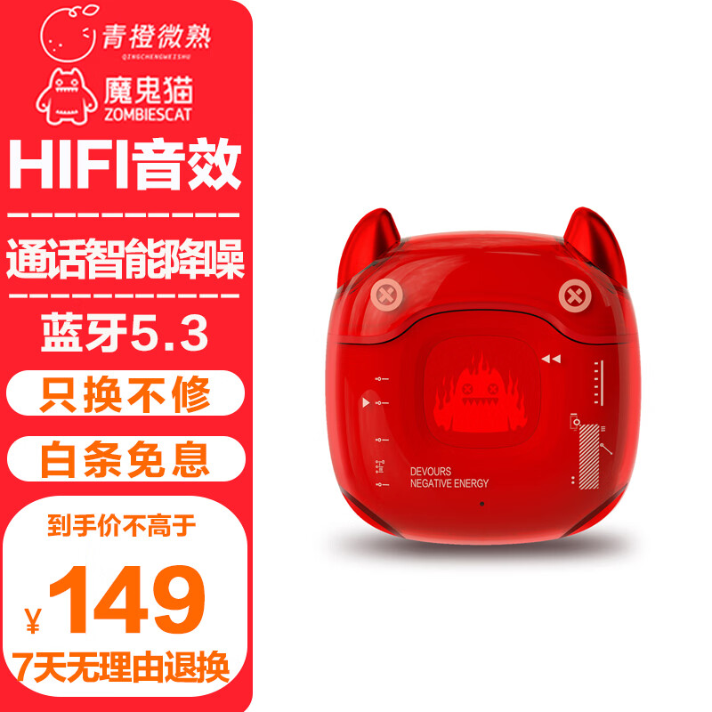 青橙微熟魔鬼猫B1真无线蓝牙耳机 音乐降噪通话游戏运动长续航半入耳式蓝牙安卓苹果手机通用 红色价格:169.00元!