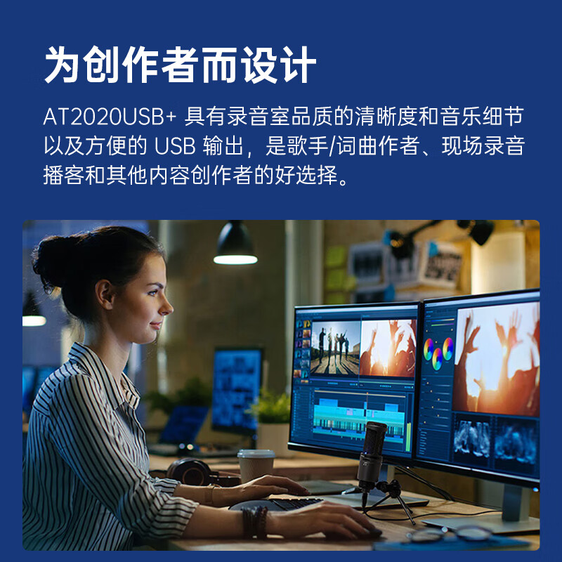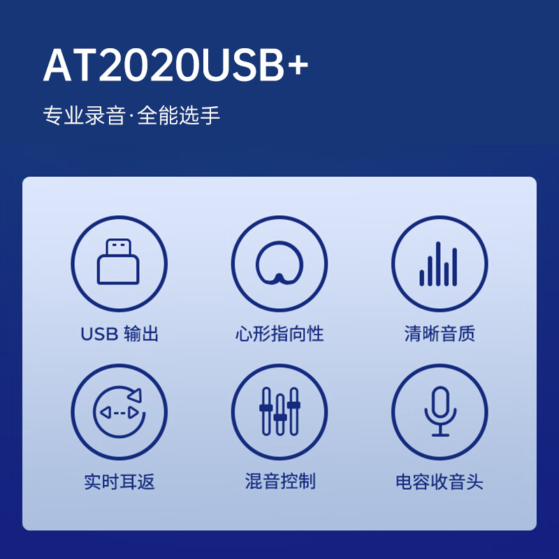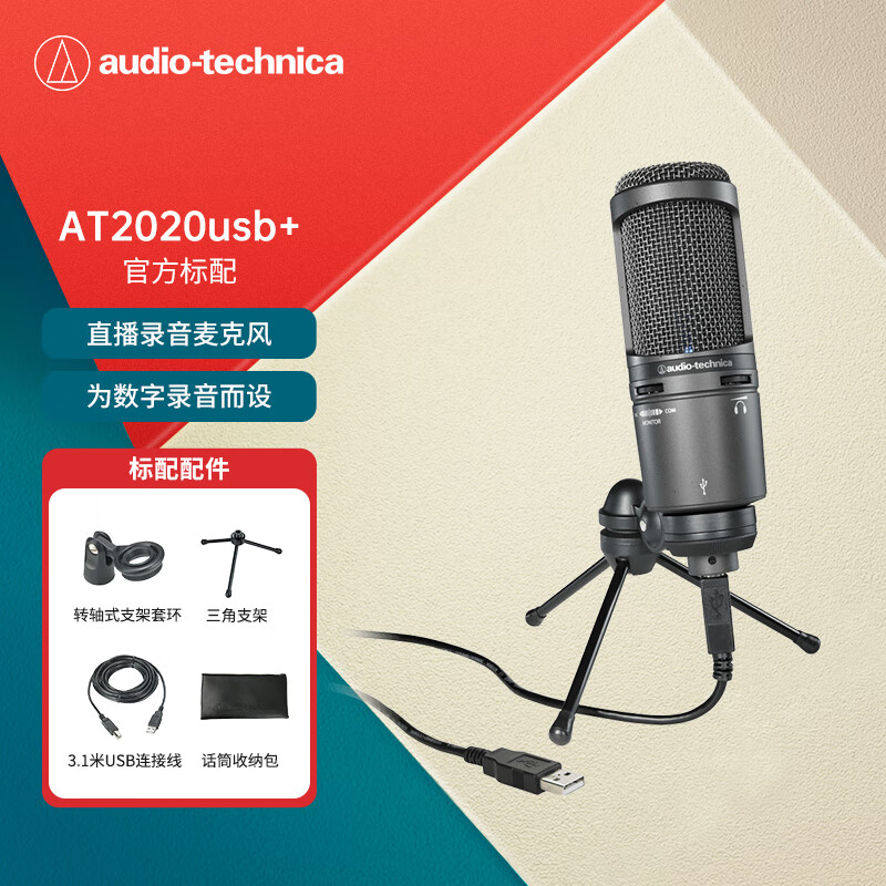 铁三角AT2020USB+ 指向性电容USB麦克风电脑轻松连接直播K歌录音配音专用话筒价格:999.00元!