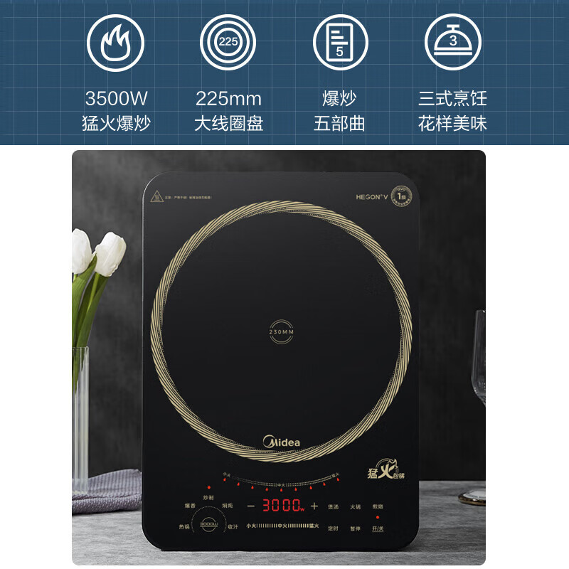 美的(Midea)电磁炉商用3000W大功率电磁灶家用爆炒匀火加热智能断电 MC-CL35W7-001价格:399.00元!