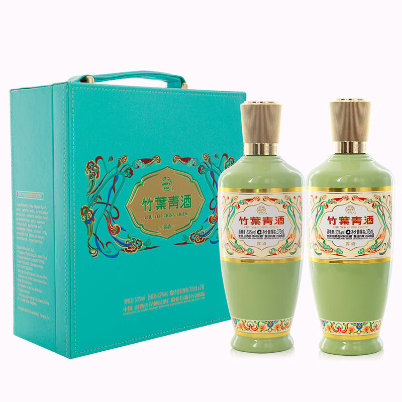 竹叶青酒 荣耀绿 清香型露酒 53度375ml*2瓶 荣耀礼盒价格:119.00元!